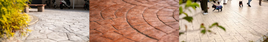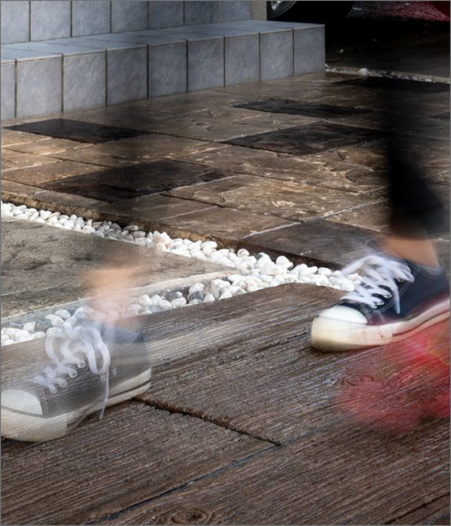 乾き切る前のわずかな時間を狙い、緻密にスタンプを施します。強固なコンクリートに命を吹き込む、スタンプコンクリートならではの専門技術です。